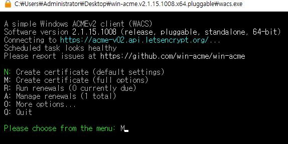 Cerbot을 주로 사용하는것 같은데 본인은 win-acme를 사용했다.