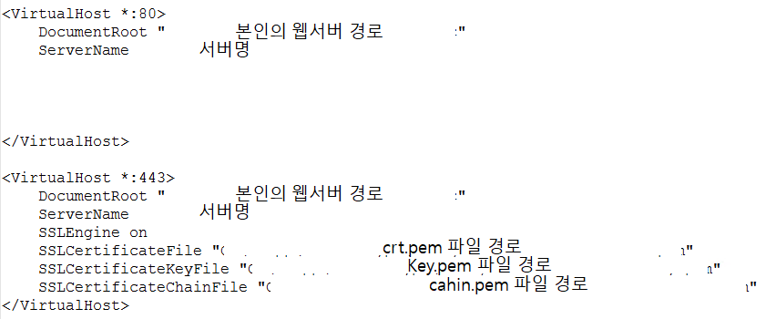 본인은 포트별로 프로젝트가 나뉘어져 있기 때문에 httpd-vhosts.conf파일을 수정했다.