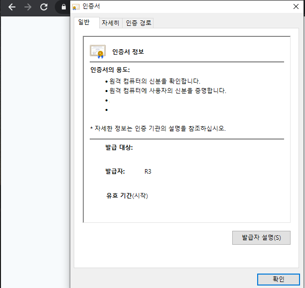위 사항 적용 후 웹서버 재실행해서 접속하게 되면 아래사진 처럼 자물쇠 표시가 보인다!