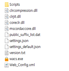 1. 압축을 풀면 아래의 파일들이 생성된다. 그 중 wacs.exe를 클릭한다.