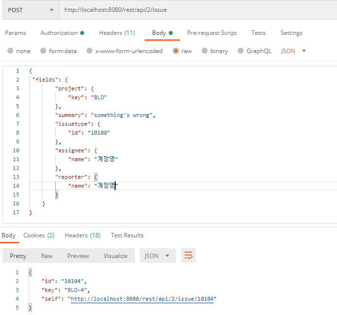 //assignee와 reporter은 실제 존재하는 계정명을 입력해줘야 한다.