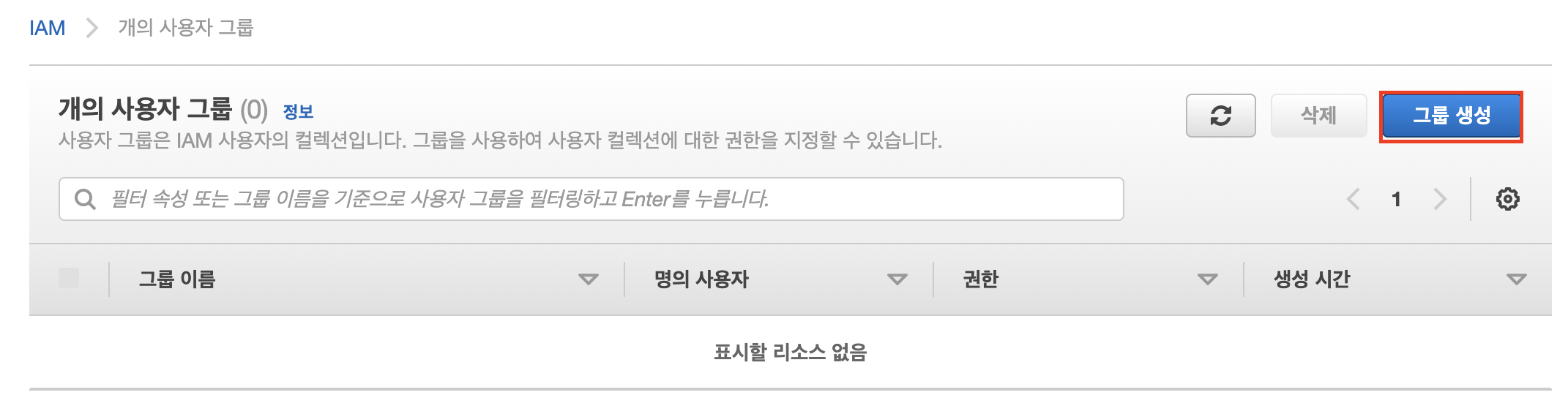 그룹 생성 버튼을 클릭한다.