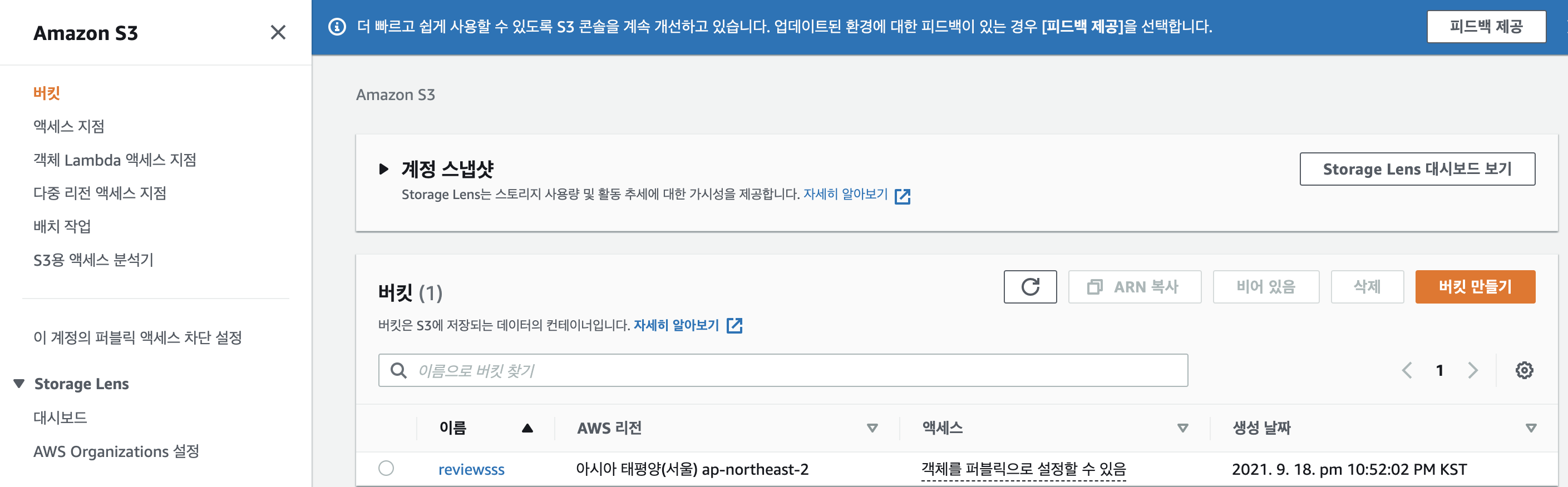 버킷 이름 항목을 클릭해보자.