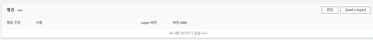 Lambda 메뉴 진입 후 좌측의 계층을 클릭하고 계층 생성버튼을 클릭한다.